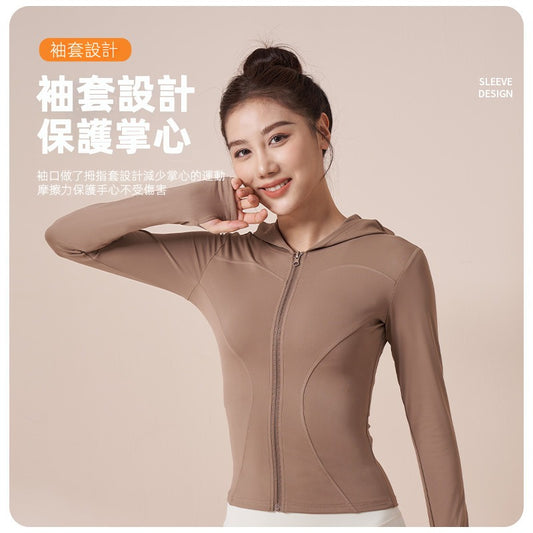 【CAa05】運動長袖緊身顯瘦跑步健身瑜伽連帽外套★Chiu3★