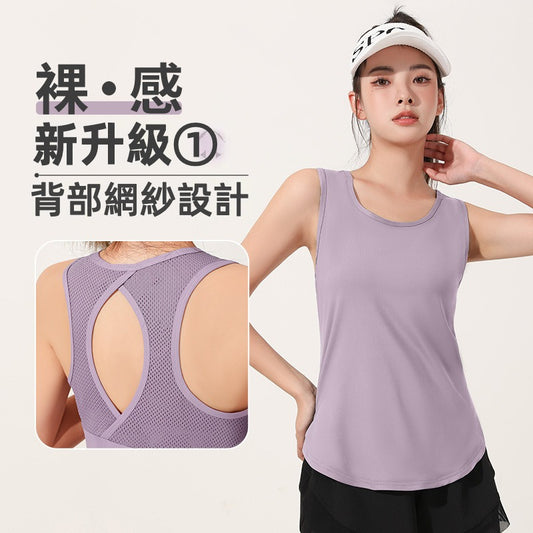 【TBa07】裸瑜珈跑步健身緊身運動速乾薄款鏤空網紗無袖女運動背心★Chiu3