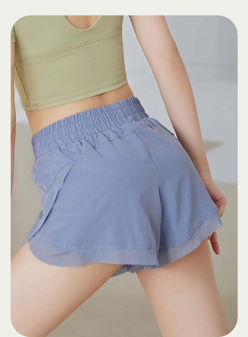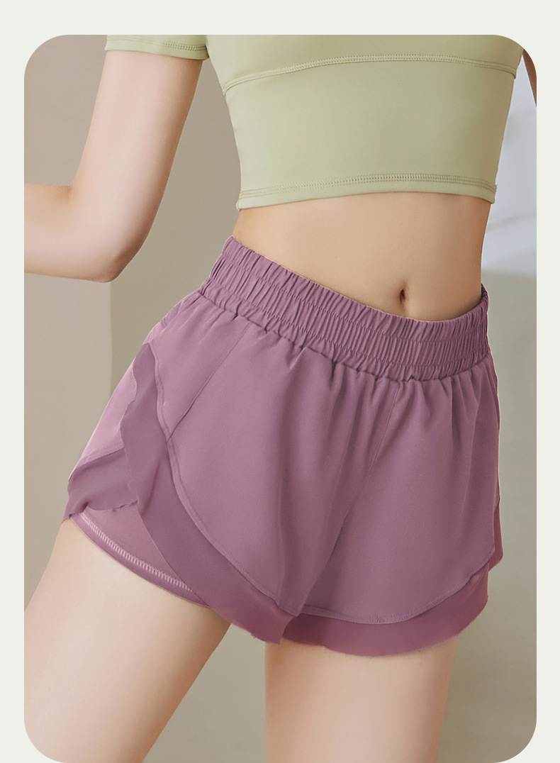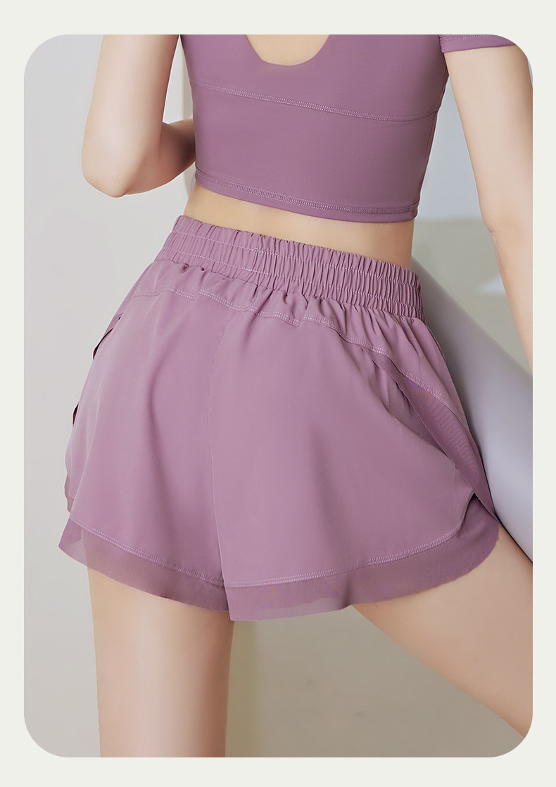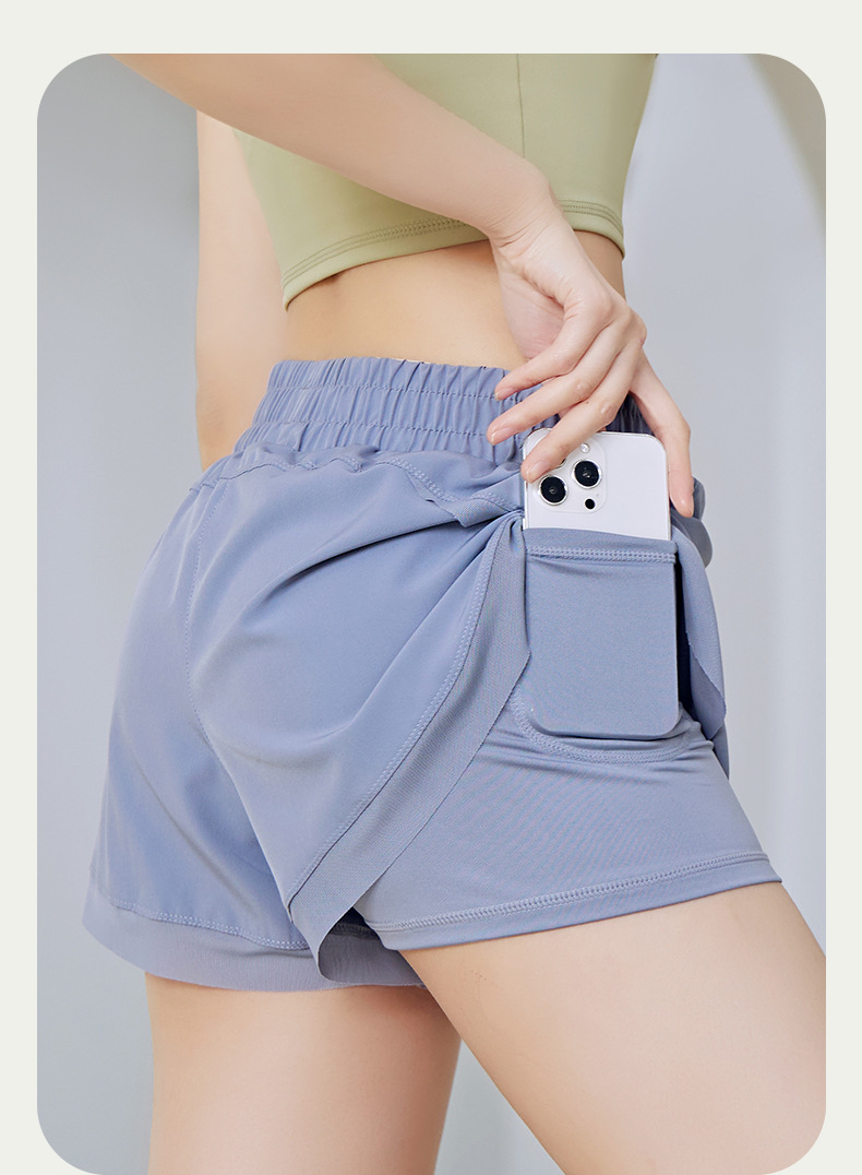 【PAa07】瑜珈提臀跑步健身透氣速乾網紗側口袋防走光假兩件短褲★Chiu3★
